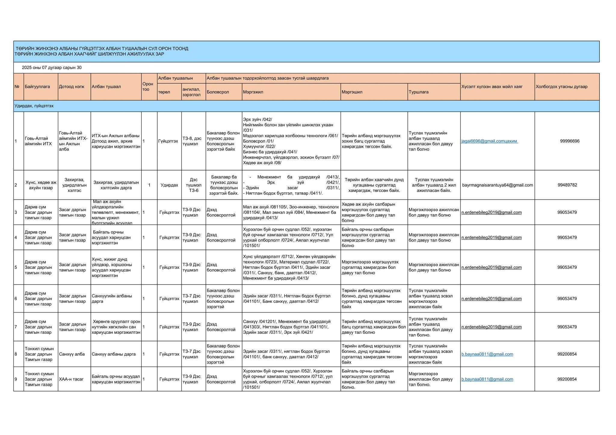 НАРИЙН БИЧГИЙН ДАРГА, АЖЛЫН АЛБАНЫ ДАРГА